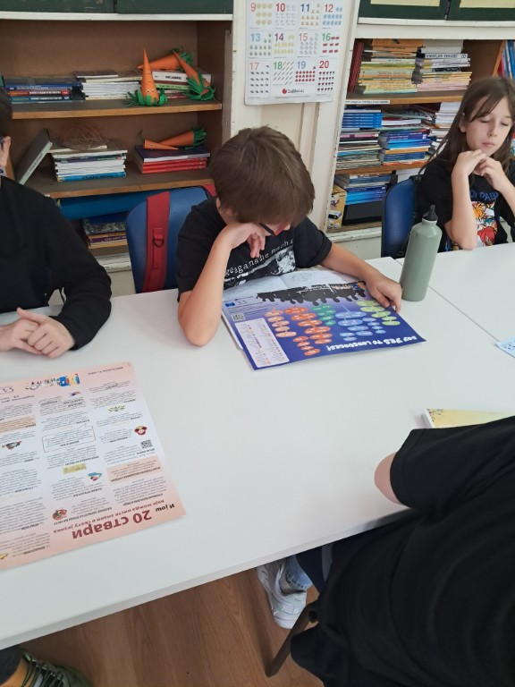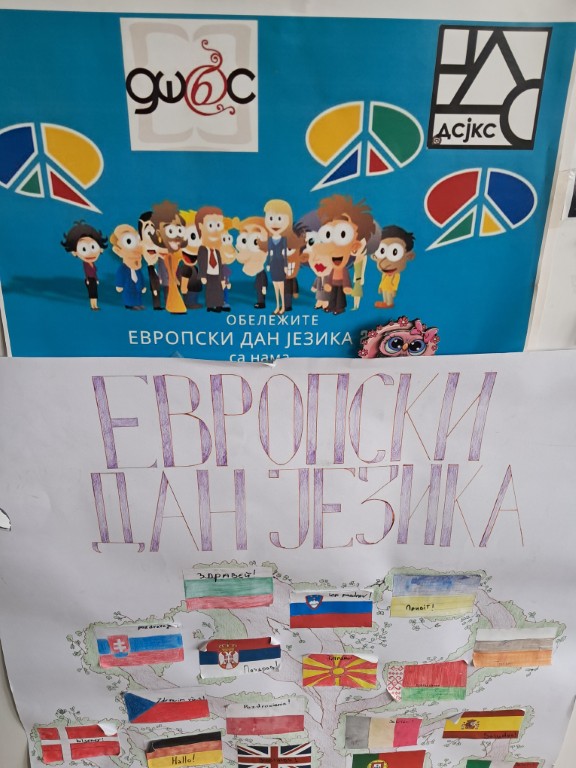 Дана 26. септембра 2025. године, у школској библиотеци, обележен је Европски дан језика. Ученици одељења 6/3 обележили су овај дан кроз заједничке активности са својом наставницом српског језика Јасмином Ковачевић и библиотекарком Аном Раковић. Циљ данашљег окупљања био је промовисање вишејезичности и вишекултуралности. Ученици су били креативни и домишљати, па су као потврду приче о томе колико је важно говорити што више језика, анализирали језичко стабло. На језичком стаблу су се нашле заставе земаља у којима се говори одређени језик, а ученици су исписали и потрудили се да науче поздраве на свим тим језицима. Говорили смо и о основним језичким групама у Европи и месту које српски језик заузима у великој породици индоевропских језика. Ово дружење смо употпунили читањем разних занимњивости у вези са одређеним европским језицима и на крају наша знања тестирали кроз занимљиво „Ларино језичко путовање“.