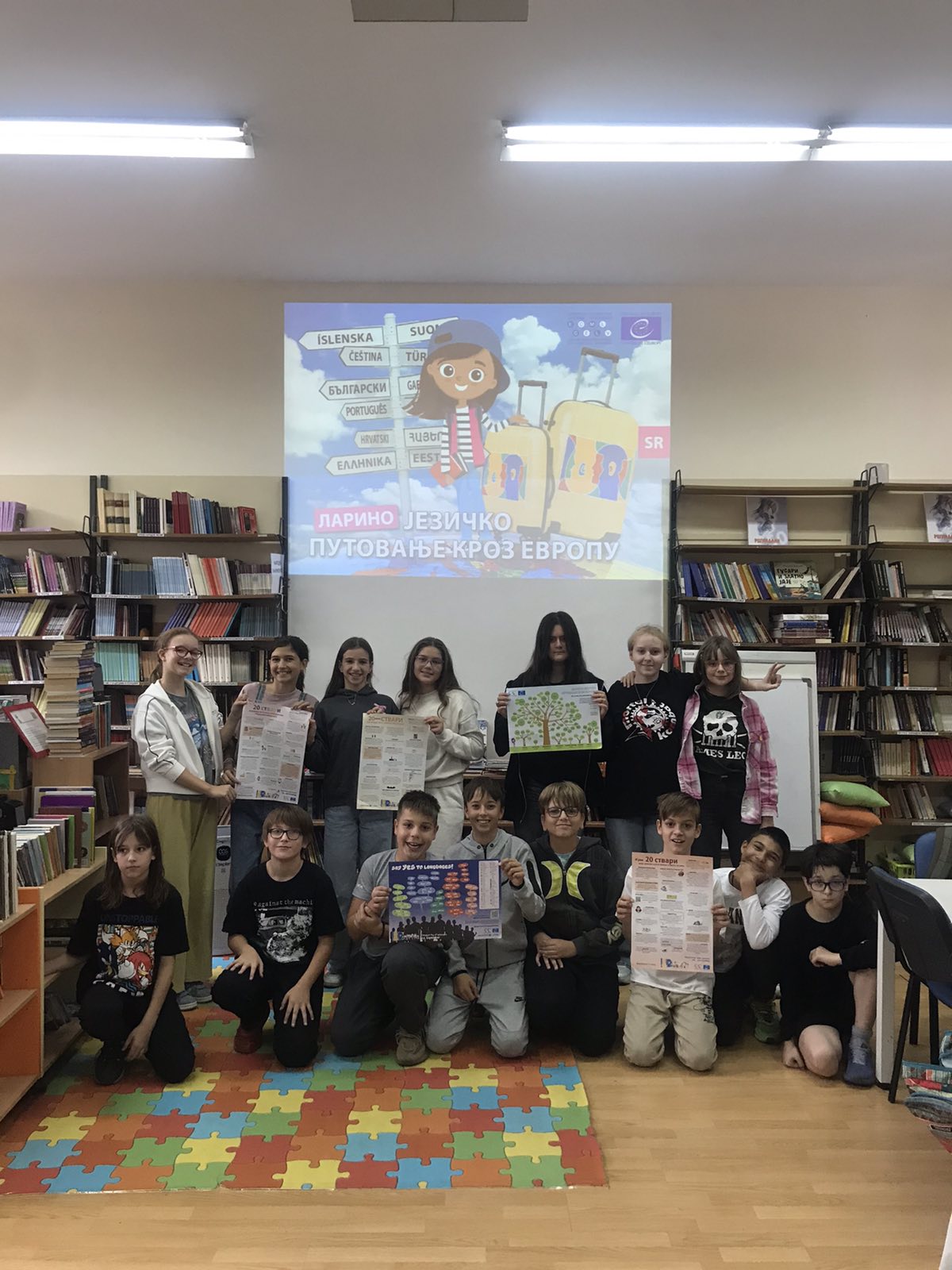 Дана 26. септембра 2025. године, у школској библиотеци, обележен је Европски дан језика. Ученици одељења 6/3 обележили су овај дан кроз заједничке активности са својом наставницом српског језика Јасмином Ковачевић и библиотекарком Аном Раковић. Циљ данашљег окупљања био је промовисање вишејезичности и вишекултуралности. Ученици су били креативни и домишљати, па су као потврду приче о томе колико је важно говорити што више језика, анализирали језичко стабло. На језичком стаблу су се нашле заставе земаља у којима се говори одређени језик, а ученици су исписали и потрудили се да науче поздраве на свим тим језицима. Говорили смо и о основним језичким групама у Европи и месту које српски језик заузима у великој породици индоевропских језика. Ово дружење смо употпунили читањем разних занимњивости у вези са одређеним европским језицима и на крају наша знања тестирали кроз занимљиво „Ларино језичко путовање“.
