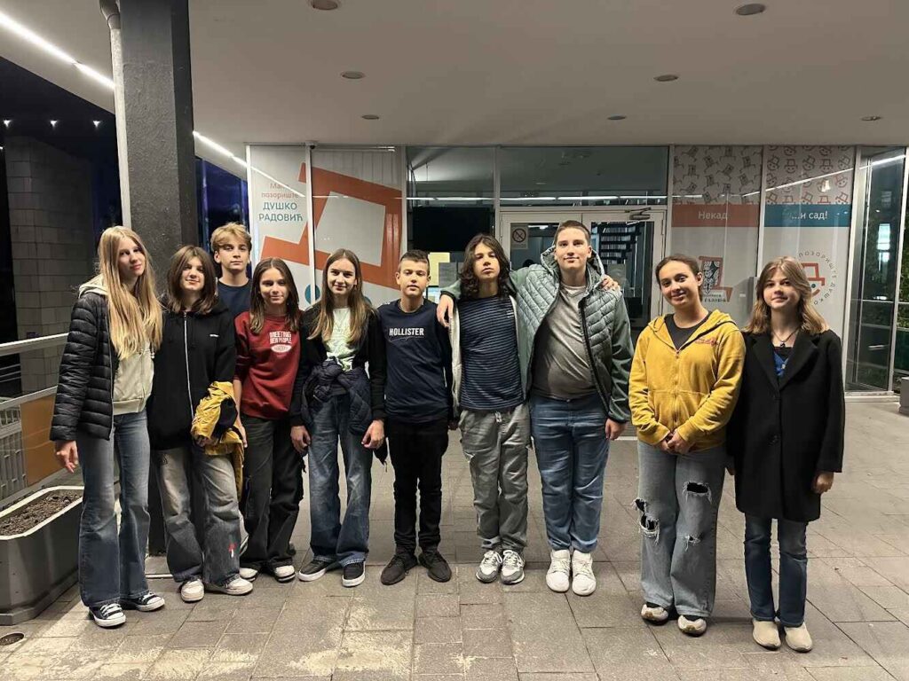 У уторак, 30. септембра, ученици одељења 7/4 наше школе посетили су Мало позориште „Душко Радовићˮ и уживали у представи „Сјај звезда на плафонуˮ.